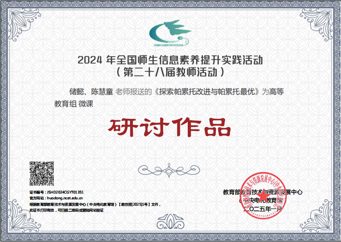 储懿、陈慧童报送的《探索帕累托改进与帕累托最优》被评为高等教育组微课研讨作品